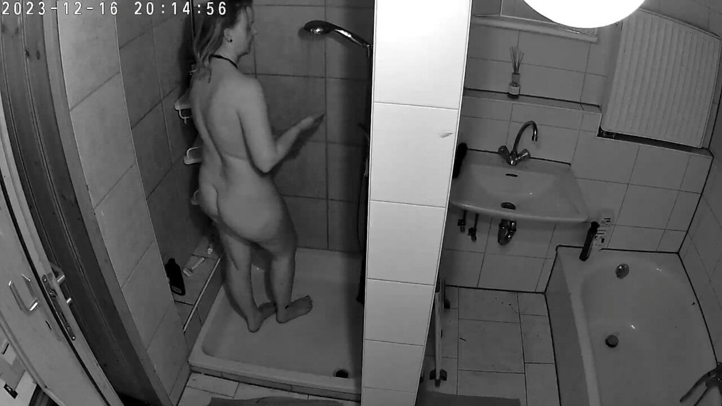 Home cam catches pawg milf in the shower